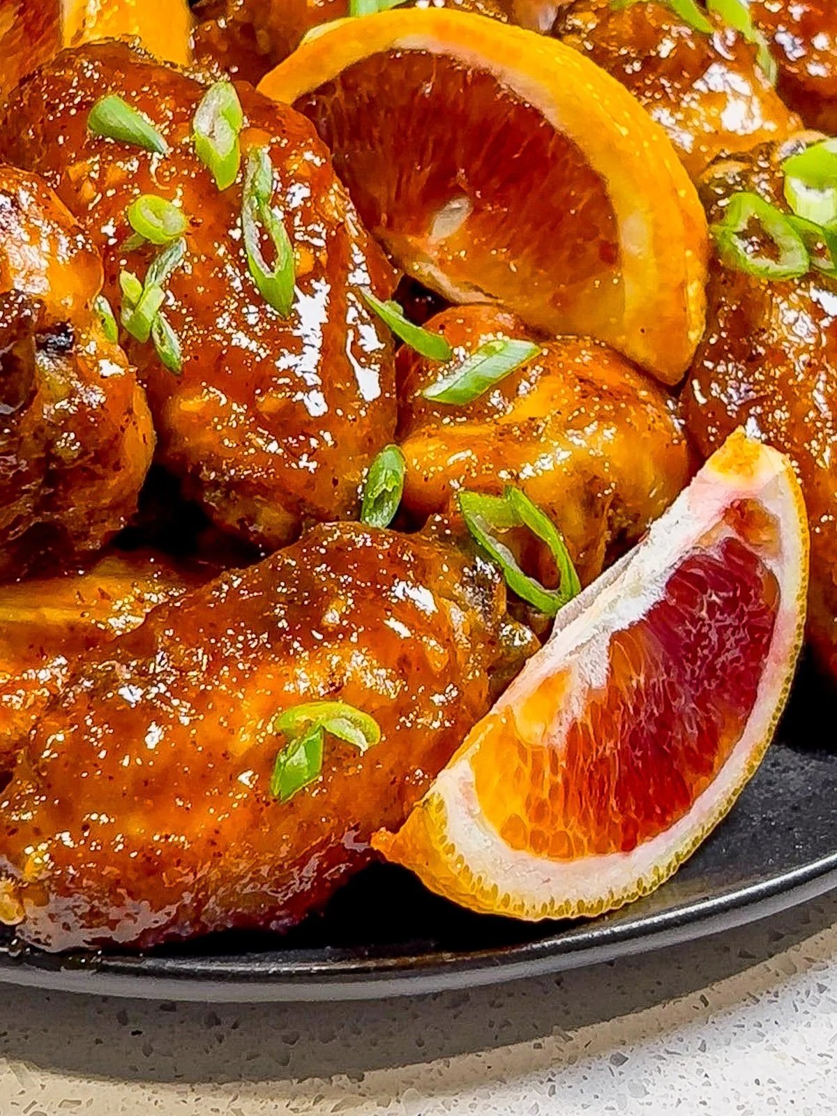 There’s something undefeated about a really good wing. Crispy on the outside, juicy on the inside, and coated in a sauce that makes you lick your fingers without shame. These Orange Chili Wings are exactly that. We’re talking air-fried wings seasoned to perfection, then tossed in a glossy, sweet-and-spicy raspberry orange glaze made with fresh Kings River Raspberry Oranges, honey, chili paste, soy sauce, and fresh ginger.